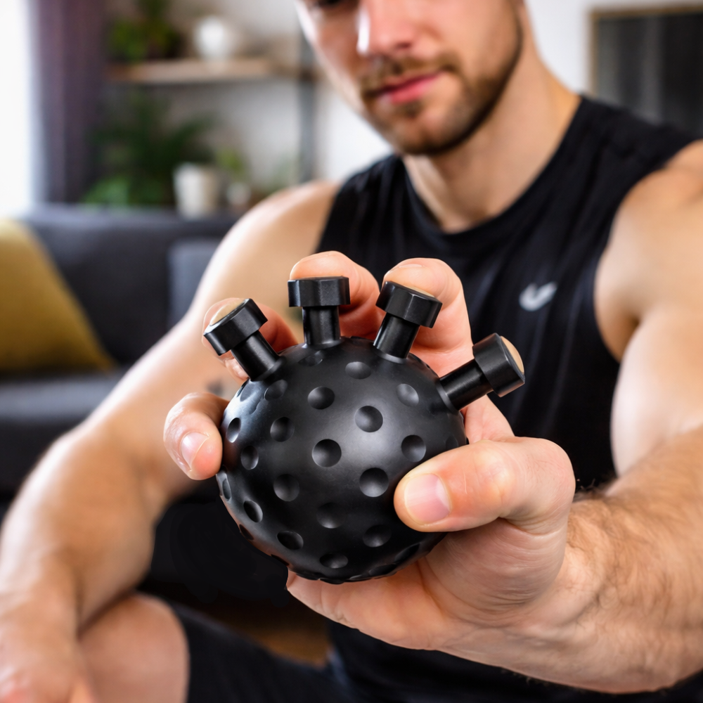 Hevix Grip to profesjonalny trenażer, który bije na głowę zwykłe ściski. Dzięki systemowi niezależnych tłoków trenujesz każdy palec z osobna, budując potężną siłę chwytu i wyraźną muskulaturę przedramion.